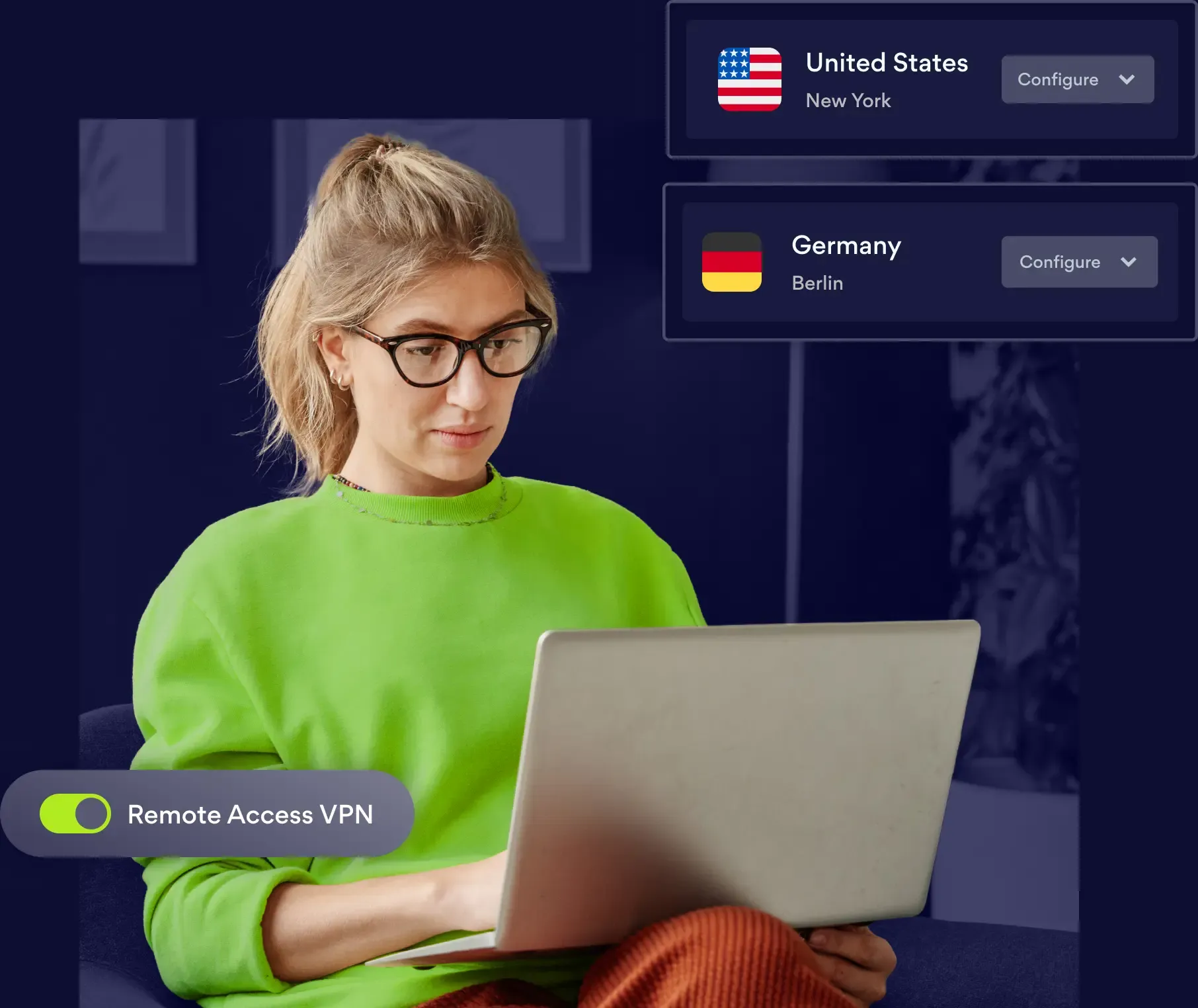 A remote access VPN creates an encrypted tunnel between your organization’s resources, endpoints, and the employees using them—shielding all online activity from outside users, and safeguarding sensitive areas of the network.